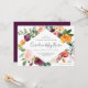 This elegant floral bridal shower invitation features a lovely watercolor flower frame and pretty script calligraphy. The autumn floral arrangement includes burgundy and blush pink roses, rust-coloured dahlias, burnt yellow flowers, and dusty green leaves. The shower honoree's name is written in lovely calligraphy lettering. The registry information is uniquely placed in the corner of the invitation.