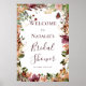 This is a rustic and elegant fall themed bridal shower welcome sign, using a modern watercolor florals, foliage and greenery design. The colour palette features typical fall colours such as burgundy, burnt orange, terracotta, deep green, berry colours and gold and coordinates readily with other products in the same collection. Easily customise all of the text as required using the provided text template. Please contact the designer for any queries regarding this design or for any matching products that aren't available.