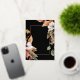 Elegant Fall Flowers & Leaves Gold Foil Script Black Holiday Card.