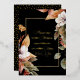 Elegant Fall Flowers & Leaves Gold Script Black Foil Holiday Card