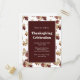 Rustic Thanksgiving Dinner Invitation with a brown background and colourful brown and gold fall foliage. With white typography lettering, you can add your own information. The back of the invitation has a customisable menu to share your cuisine choices with your guests. A fun autumn invite to celebrate with loved ones.