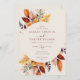 Elegant Fall Leaves Autumn QR Code Photo Wedding Invitation features a beautiful bouquet of autumn leaves in rust, yellow, gold, mustard, brown and purple.
