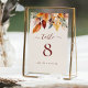 Elegant Fall Leaves Autumn Wedding Table Number features a beautiful bouquet of autumn leaves in rust, yellow, gold, mustard, brown and purple.