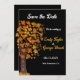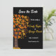 This elegant fall wedding save the date invitation is perfect for a modern autumn wedding. The simple design features a tree and fall leaves with elegant white and yellow typography on a black background.