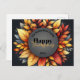 This elegant Thanksgiving postcard features a central circular grey plaque with a sophisticated golden trim. The plaque showcases fully customisable text, allowing you to personalise it with your family name, a warm “Happy Thanksgiving” greeting, and the current year. The upper half of the circle displays the family name in a stylish cursive script, while the bold, larger letters below convey the festive message. The year “20XX” at the bottom can be updated to reflect the current year.