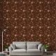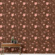 Elegant copper coloured Fall leaves and flourishes on a chocolate brown background.