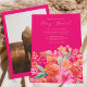 Elegant fall terracotta boho floral photo wedding invitation featuring pretty bohemian and rustic flowers in earth tone colours, terracotta, pink , green and brown with an elegant romantic brush script font typography on dark pink. Add your photo at the back. Perfect for small casual boho wedding ceremony.