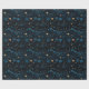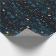 Elegant Falling Cosmic Hearts in Blue and Gold Wrapping Paper