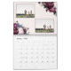 This darker colour theme botanical floral family calendar has a place for a main photo on the front, nothing on the back and two photo spots on each page of the month. Each page is designed with different florals that switch corners in between each page. Front page has a spot to put your family name and year on it.