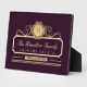Elegant Family Home Gold Burgundy Plum Wine Plaque. Gorgeous design in rich gold and cream colours on Burgundy Plum Wine colour. Customisable family monogram initial, family name, house name, and established date (or any text you choose). We invite you to visit our Zazzle store, Austen & Grace, to view matching products and more. Please contact us if you require any assistance.