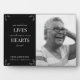 Elegant Family Memorial Photo Remembrance Plaque. Classy and elegant design to best commemorate the lives of your dearly departed loved ones. This design features vintage flourishes frame and a saying - "You touched our lives, and will remain in our hearts forever!'. There are 2 customisable lines at for you to add the name of the departed and dates.