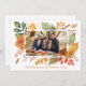 This beautiful fall foliage Thanksgiving family photo card features your favourite horizontal photograph surrounded by gorgeous watercolor autumn leaves. Personalise these picture cards with your fall blessings or holiday message in orange under the autumnal design.