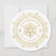 Affordable custom printed holiday photo cards with simple templates for customisation. This fun design features a circle die-cut shape with an ornate geometric snowflake frame with a faux gold foil look. The text reads "Joyful Christmas Wishes" in a simple modern font. Personalise the greeting, add your family name, the year or other custom text. Reverse side has space for your photo or additional text. Use the design tools to choose any background colour, edit the text, add more photos and create a unique one of a kind round Christmas photo card.