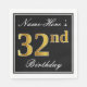 Elegant, Faux Gold 32nd Birthday + Custom Name Napkin