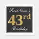 Elegant, Faux Gold 43rd Birthday + Custom Name Napkin