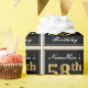 This simple and elegant wrapping paper design features a personalised message like "NameHere’s 58th Birthday" (with the "58th" having a faux/imitation gold-like colouring look) within a black-coloured square area featuring a simple border outline. The name is in an elegant white-coloured script-like text, and can be customised. Wrapping paper like this could perhaps be used when wrapping birthday gifts for somebody who is celebrating their fifty eighth birthday. [~Z0000217]