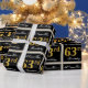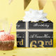 This simple and elegant wrapping paper design features a personalised message like "ANameHere’s 63rd Birthday" (with the "63rd" having a faux/imitation gold-like colouring look) within a black-coloured square area featuring a simple border outline. The name is in an elegant white-coloured script-like text, and can be personalised. Wrapping paper like this could perhaps be used when wrapping birthday gifts for somebody who is celebrating their sixty third birthday. [~Z0000217]
