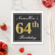 This simple and elegant paper napkin design features a message like "NameHere’s 64th Birthday" (with the "64th" having a faux gold-like colouring look) within a black-coloured square area featuring a simple border outline. The name is in a white-coloured script-like text, and can be customised. Napkins like these could perhaps be used at a birthday party for somebody who is celebrating their sixty fourth birthday. [~Z0000136]