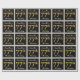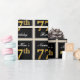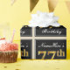 This simple and elegant wrapping paper design features a personalised message like "NameHere’s 77th Birthday" (with the "77th" having a faux/imitation gold-like colouring look) within a black-coloured square area featuring a simple border outline. The name is in an elegant white-coloured script-like text, and can be personalised. Wrapping paper like this could perhaps be used when wrapping birthday gifts for somebody who is celebrating their seventy seventh birthday. [~Z0000217]