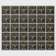 This simple and elegant wrapping paper design features a personalised message like "ANameHere’s 79th Birthday" (with the "79th" having a faux/imitation gold-like colouring look) within a black-coloured square area featuring a simple border outline. The name is in an elegant white-coloured script-like text, and can be customised. Wrapping paper like this could perhaps be used when wrapping birthday gifts for somebody who is celebrating their seventy ninth birthday. [~Z0000217]