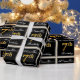 This simple and elegant wrapping paper design features a personalised message like "ANameHere’s 7th Birthday" (with the "7th" having a faux/imitation gold-like colouring look) within a black-coloured square area featuring a simple border outline. The name is in an elegant white-coloured script-like text, and can be customised. Wrapping paper like this could perhaps be used when wrapping birthday gifts for somebody who is celebrating their seventh birthday. [~Z0000217]