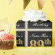 This simple and elegant wrapping paper design features a personalised message like "Name-Here’s 89th Birthday" (with the "89th" having a faux/imitation gold-like colouring look) within a black-coloured square area featuring a simple border outline. The name is in an elegant white-coloured script-like text, and can be personalised. Wrapping paper like this could perhaps be used when wrapping birthday gifts for somebody who is celebrating their eighty ninth birthday. [~Z0000217]