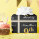 This simple and elegant wrapping paper design features a personalised message like "NameHere’s 9th Birthday" (with the "9th" having a faux/imitation gold-like colouring look) within a black-coloured square area featuring a simple border outline. The name is in an elegant white-coloured script-like text, and can be customised. Wrapping paper like this could perhaps be used when wrapping birthday gifts for somebody who is celebrating their ninth birthday. [~Z0000217]