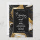 A wedding invitation featuring a faux gold, black and white marbled design.