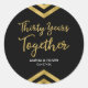 This elegant round sticker features a chic geometric chevron and the word "Thirty Years Together" in faux gold against a black background. It's great for a 30th wedding anniversary celebration. Check out matching invitations and items here http://www.zazzle.com/collections/modern_faux_gold_chevron_celebration_collection-119531050277382712?rf=238364477188679314