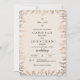 This elegant wedding invitation set is framed with hand-drawn leaves in faux gold foil finish on a cream background. Modern typography adds a stylish contemporary twist to this classic design by Kitty Pie Prints.