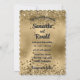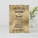 A wedding invitation featuring an elegant faux gold glitter and foil background.