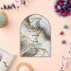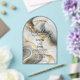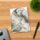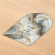 A wedding invitation featuring a faux gold, grey and white marbled design.
