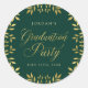 Elegant Faux Gold Leaves Green Graduation Party Classic Round Sticker