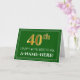 Elegant Faux Gold Look 40th Birthday, Name (Green) Card