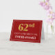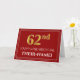 Elegant Faux Gold Look "62nd" Birthday, Name (Red) Card
