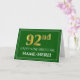 Elegant Faux Gold Look 92nd Birthday, Name (Green) Card