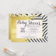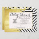 Elegant faux gold paint strokes with black and white stripes pattern Baby Shower invitations. Very classic and sophisticated design for the mum to be. Personalise with your own message and monogram on the back. All photo print design.