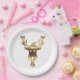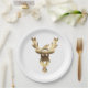 Elegant Faux Gold Reindeer wearing Santa Hat and Christmas Bell, Stylish Christmas Party Paper Plates