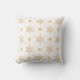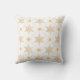 Throw pillow with elegant faux gold foil imitation snowflakes and stars pattern on white background.