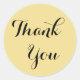 Custom, personalised, elegant typography, black and golden yellow, script thank you classic round sticker. An elegant thank you sticker for sealing your party favours for wedding, anniversary celebrations, receptions, ceremonies, birthday, bridal shower, baby shower, holidays, or any other special occasion.
