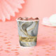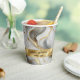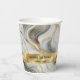 Wedding paper cups featuring an elegant faux gold, white, and grey marbled design.