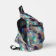 A sling bag with a faux gold and teal and purple opal stone background.