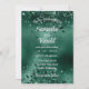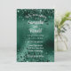 A wedding invitation featuring an elegant faux green glitter and foil background.