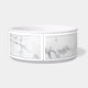 Stylish light faux marble texture look-like image together with a personalizable text area for a name or text such as "food" or "water". The font is a lovely script font that matches the thin border that runs on the top and bottom. NOTICE: THE DESIGN IS A DIGITAL IMAGE AND IT WILL BE PRINTED ON THE PRODUCT.