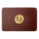 Elegant Faux Red Leather & Gold Monogram Initial Bath Mat