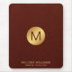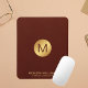 Elegant Faux Red Leather & Gold Monogram Name Mouse Pad