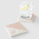 The coasters are gorgeous, a quality feel and heavy weight. They look like a precious archeological find. A rustic stone juxtaposed with a modern floral black and white print. I like the way the print goes slightly imperfect on the cut stone edges giving them a kind-of natural beauty.