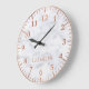 Enhance your space with timeless elegance through our Elegant Faux Rose Gold Glamourous White Marble Large Clock. The perfect fusion of sophistication and modernity, featuring a luxurious white marble backdrop adorned with rose gold numerals and your personalised name. Make a statement in any room with this exquisite timepiece that effortlessly blends functionality and style. You can use the design tool for text font style and size editing. Elevate your decor with a touch of opulence – order now to capture the essence of refined beauty!