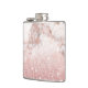 Elegant Faux Rose Gold Glitter White Marble Ombre Hip Flask