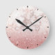 Elegant Faux Rose Gold Glitter White Marble Ombre Round Clock